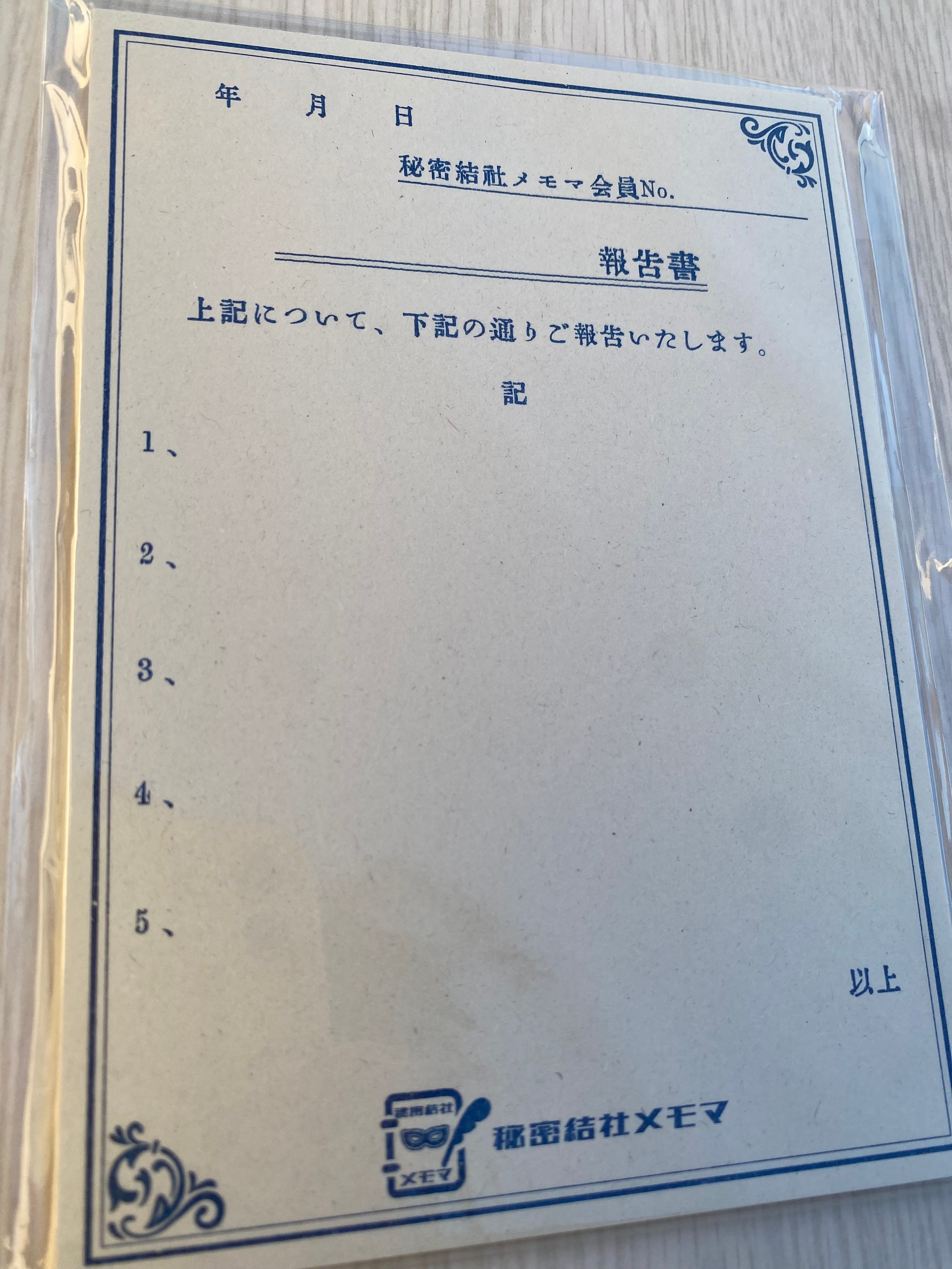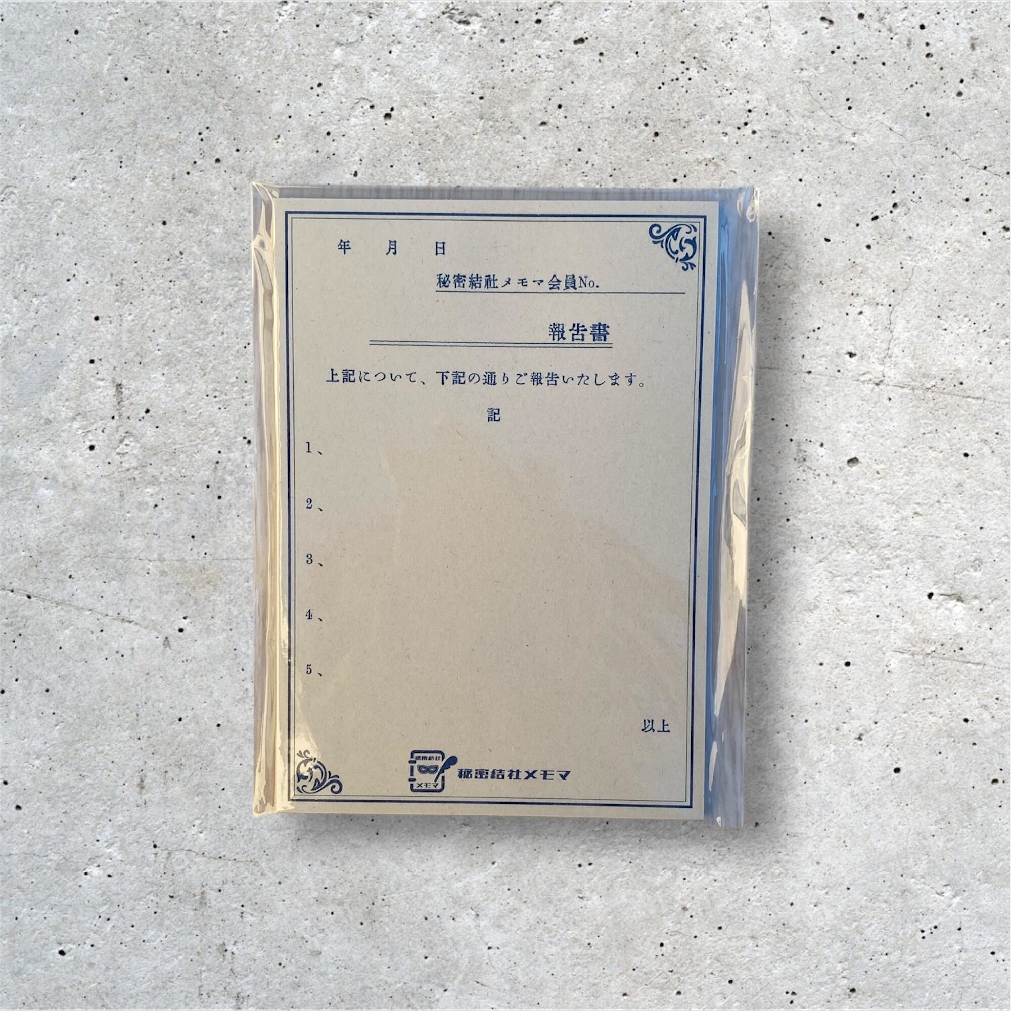 リソグラフ印刷で製作された、報告書風のメモ帳です。表向きは報告書、その裏の顔は"秘密結社メモマ"の会員のあいだで取り交わされる秘密のメモ。なんだかドキドキしちゃいます。でも安心してください。秘密結社の会員ではないかたもご使用いただけますよ!